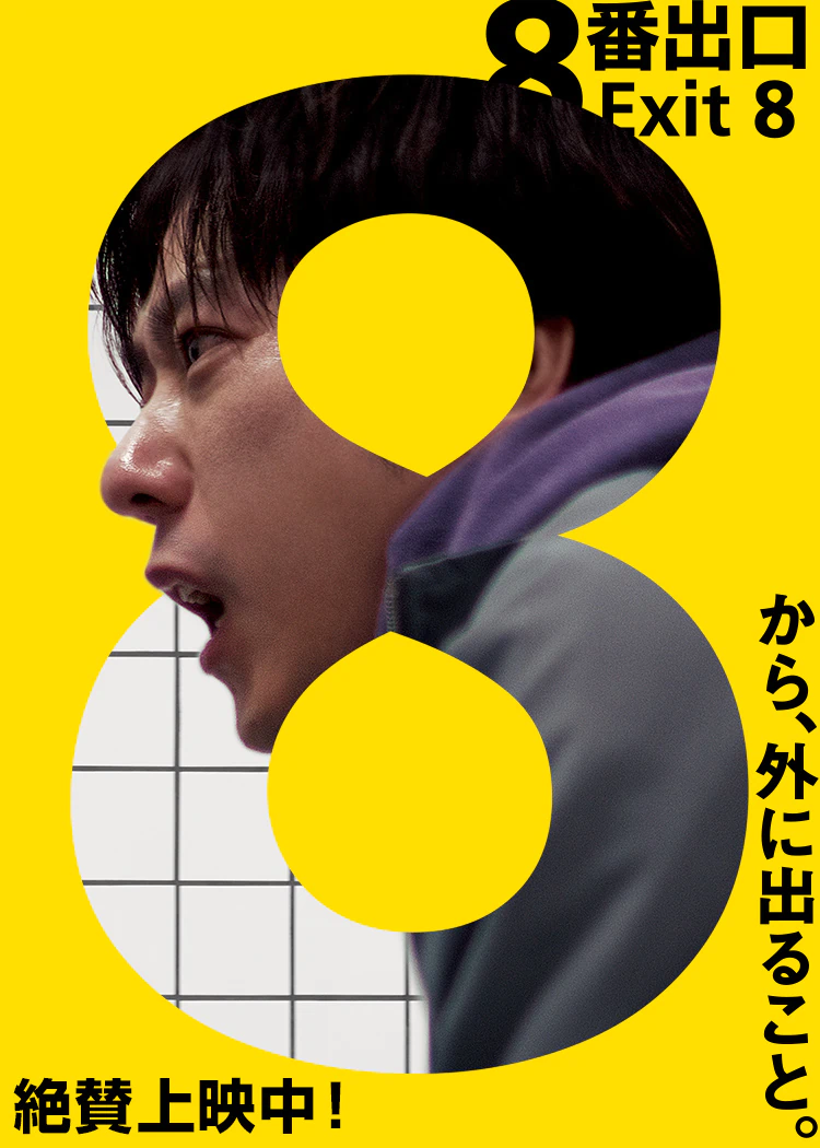 地下鉄の改札を出て白い地下通路を歩いていく。天井には【出口8】の看板。しかしいつまでも出口に辿り着くことができない。何度もすれ違う同じ男に違和感を感じ、やがて自分が同じ通路を繰り返し歩いていることに気付く。そして壁に掲示されている、謎めいた【ご案内】を見つける。通路のどこかに【異変】があれば引き返し、なければそのまま前に進む。【1番出口】【2番出口】【3番出口】…正しければ【8番出口】に近づき、見落とすと【0番出口】に戻る。次々と現れる不可解な異変を見つけ、絶望的にループする無限回廊から抜け出すことができるのか?